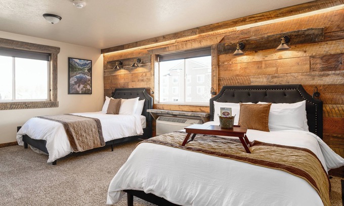 Escape to this two queen-bedroom oasis in the heart of West Yellowstone. The perfect space for any vacation with a serene hideaway. Located in The Adventure Inn Yellowstone. Luxuriously rustic, charmingly warm little inn tucked away in the small quaint town of West Yellowstone, Montana. After a perfect day of fishing or exploring the area, you will be able to walk to any of the popular restaurants and shops.