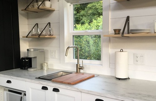 Located less than an hour from downtown Columbus, this tiny house has all the comforts of home – just bring your toothbrush and a change of clothes and your all set to enjoy the renowned Hocking Hills hiking trails a nearby winery and within walking distance to restaurants, a brewery, and a coffee shop.