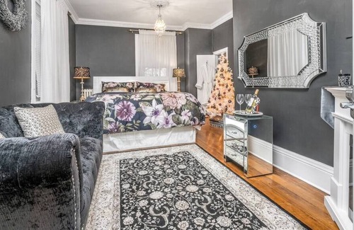 The Glamour Suite at Lakehurst is richly decorated with contrasting dark and light for an opulent feel and a true sense of luxe. This corner suite is bright and beautiful and offers a King Bed and sitting area with gas fireplace. All suites have TVs, mini-fridges, Keurig coffee makers, microwaves & mini fridges. Guests have access to all Lakehurst facilities including outdoor heated pool, hot tubs, patios, billiard room, and lounges. Steps to Lake Ontario and rocky beach and minutes to Victoria Park and Beach. The Glamour suite also has it's own private bathroom.