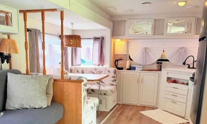 Come enjoy a private, comfortable, cozy, safe and fun space. We call it The Glamper. A 30ft RV with all the amenities. We're also close to everything. Supermarket, Train, Beach, Restaurants and Medical Center.