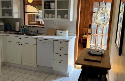 Each bedroom features a comfortable queen bed for a fantastic night's sleep with luxurious bedding. Enjoy a fire in the living room, and a wide range of games including croquet, Scrabble, 'Bug Bingo'. There is a cozy sofa bed for extra guests and a 76" smart screen TV. This soothing retreat includes Nest-controlled AC, WiFi, in-house laundry, and more for your convenience. We'll be available to answer any questions while you stay at our place.