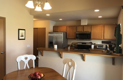 Come stay awhile in The Good Life to play, relax, and enjoy all the activities of Desert Aire and nearby attractions. Spacious rooms with comfy beds, open kitchen concept and plenty of room for your family and friends. Relax on the back patio and watch the planes come and go, while taking in those mountain views.
