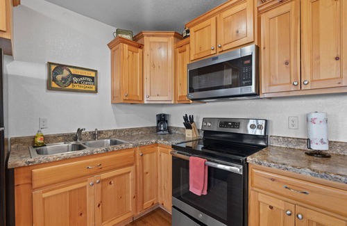 We provide a starter kit that includes 1 roll of paper towels, 1 roll of toilet paper per bathroom, 3 garbage bags per can, and starter dish soap & hand soap. Linens and towels are supplied, and if you need more, there is a washer and dryer available. The kitchen includes basic cooking utensils, but there is no dishwasher, so we suggest bringing paper products for easier cleanup. Please note, we do not provide oil, salt, pepper, food, drinks, or personal toiletries.
