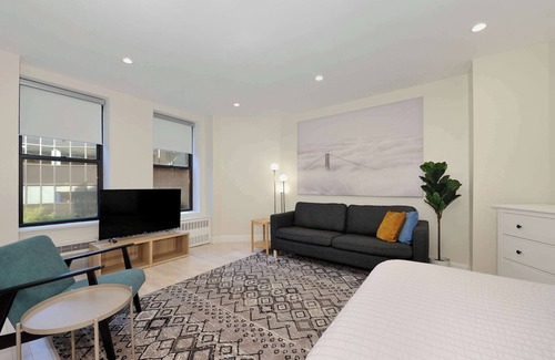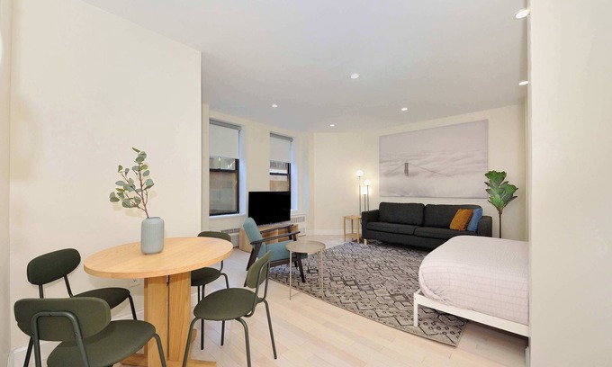 The Grand VI is a stylish studio on the fifth floor in Midtown, New York. With elevator access, it offers a kitchen, Wi-Fi, air conditioning, and family-friendly amenities, ensuring comfort for up to two guests.