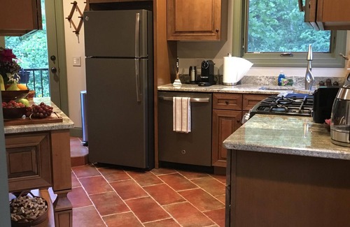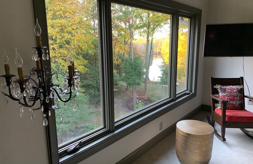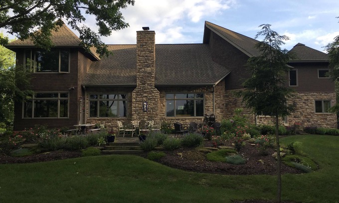 Nestled amongst the area's best wineries on a private estate located one mile south of Spire Institute and eight miles south of Geneva-on-the-Lake. Situated on a high cliff top overlooking the valley of the federally designated Wild & Scenic Grand River. Fully private furnished luxury suite including full kitchen located in private wing of custom home with separate entrance. Has one private bedroom with queen bed, fine linens and one super comfortable "Restoration Hardware" queen sized sofa bed in living room. Secluded private property with views from all windows, yet close to everything the area has to offer.