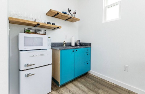 This newly constructed 1-bedroom, 1-bathroom ADU guest house offers a perfect home base for any Austin visit. Styled as a contemporary studio apartment, the space features a discreet bedroom separated from the living room and kitchen area. With a queen-size bed and room for a queen-size air mattress in the living room, it comfortably accommodates two guests, or up to four for a cozier stay. Situated on a quiet street in Austin's centrally-located, historic Hyde Park neighborhood, the property is surrounded by mature trees, offering tranquility. Whether you’re seeking a mellow retreat, or a peaceful, well-appointed space for remote work, this guest house is an exceptional choice for both relaxation and productivity.