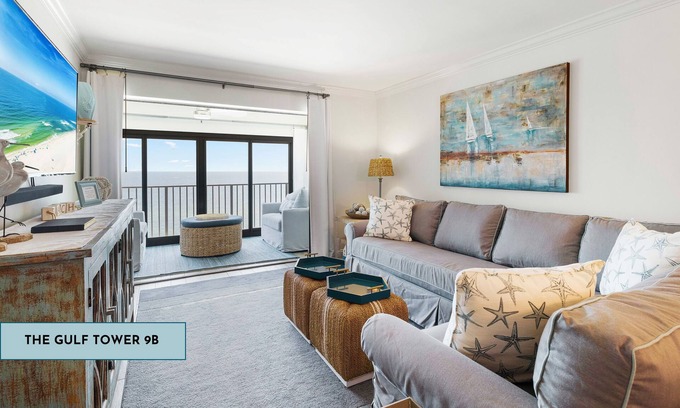 Welcome to Gulf Tower 9B, a stylish and comfortable two-bedroom, two-bathroom condo with breathtaking Gulf views. This updated beachfront retreat sleeps up to five guests and offers everything you need for a relaxing coastal escape.