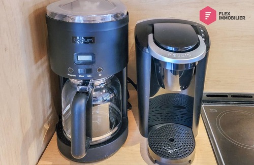 - Well-equipped kitchen with DISHWASHER, 2 coffee machines (Keurig and filter), fondue pot... and plenty of work space to cook