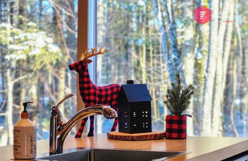 Le Halo lives up to its name: bathed in light, this chalet with its warm wooden décor is a luminous oasis where the sun will dazzle you from morning to night. With two exterior walls featuring floor-to-ceiling windows, the living space is unique and welcoming. Take advantage of the SPA, pool, sauna and billiards before heading off on an adventure to the wild Bras-du-Nord Valley or picturesque Old Quebec!