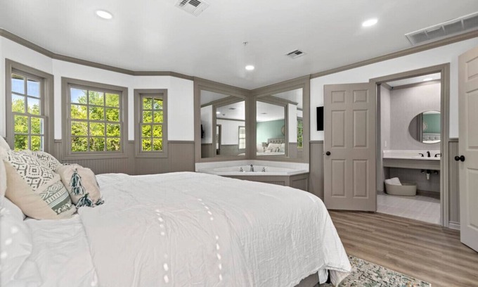 This cabin has two beautiful suites in one! Instead of renting separately, you can book the suites right next to each other to enjoy with friends or family. Need more space? Contact us for details.