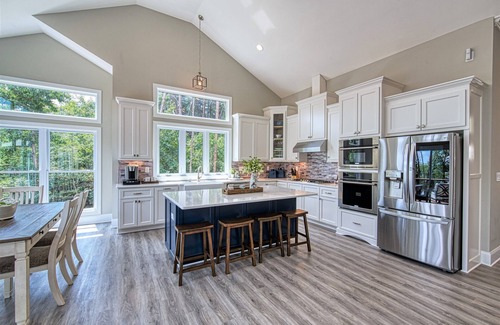 When stepping onto the patio, you will notice a state-of-the-art Outdoor Kitchen. It features a 34' Blaze propane grill, 24" Power Burner for the Low County Boil & a MasterBuilt Digital Electric smoker. The outdoor kitchen contains a sink and refrigerator and seating for 14 people. There is a 65" Smart television for movie watching or sporting events. The backyard features AstroTurf that is weatherproof and perfect for outdoor fun and games. You can also relax by the firepit and watch all the wildlife that is within view.