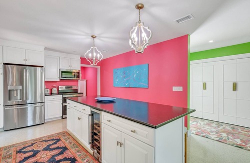 The Harvey House stands out with its lively and colorful décor, injecting a sense of fun and excitement into your stay. This home offers expansive living spaces with views of the pool and golf course, providing a serene backdrop for your island retreat. The house includes several distinct indoor and outdoor living areas, ensuring comfort and privacy for all guests.
