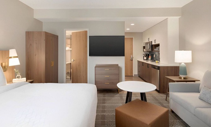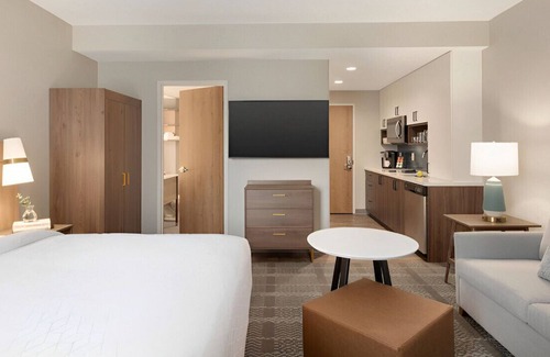 Enjoy the wonderful amenities and service at our property. Your room features an upscale residential style with a contemporary charm. Includes a full kitchen and full-size sofa sleepers. Sleep comfortably on a Simmons Beautyrest pillow-top mattress and wake up recharged and ready for the day. Amenities include a complimentary hot breakfast buffet, a fitness studio, and a large guest laundry facility, Miscellaneous fees may be subject to additional costs after booking.