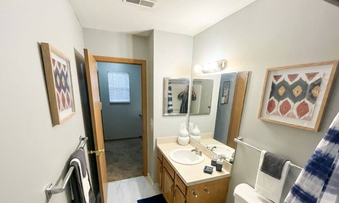Easy access to highway, 7 minutes from Liberty shopping and restaurants. Also on the bus line.