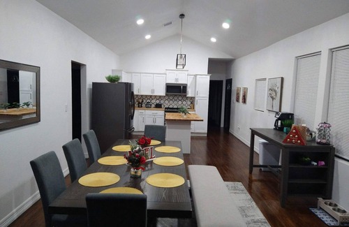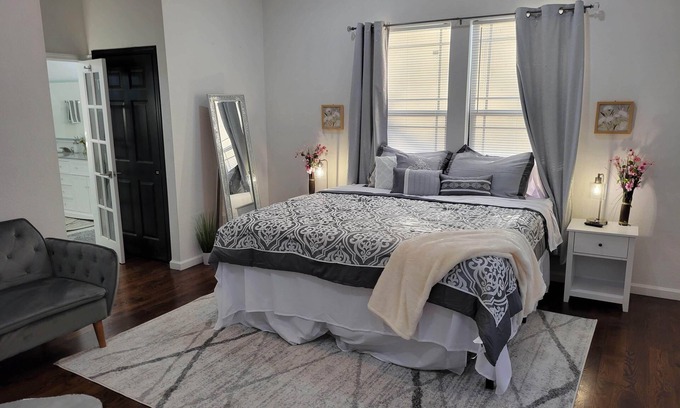 Nestled near downtown Tulsa, this delightful house offers 4 bedrooms - 3 full beds and 1 king bed. With amenities like a washing machine, heating, WiFi, Bluetooth bathrooms, and more, guests will feel right at home. The 2 bathrooms come equipped with a hair dryer for added convenience. The master suite has a comfortable standalone tub for you to soak and relax in piece in addition to a large walk in shower with a rainfall sprout for the ultimate experience. Experience a terrific stay in this soothing retreat. We'll be available to answer any questions while you stay at our place. This house is conveniently located on the ring of downtown, so you can easily access all downtown amenities without the feel of the busy downtown flow.