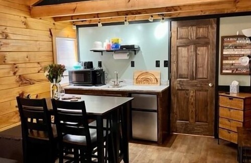 Imagine spending a cozy weekend in The Heartwood surrounded by nature. You can enjoy the fresh air, the scenic views, and the peaceful sounds of the forest. You can relax and read a book or play a board game with your loved one. You can also explore the nearby wildlife. The cabin has a microwave and hot plate, a bathroom, grill, and hot tub. It's the perfect getaway from the stress and noise of the city and or to just reconnect with your loved one. Book your stay today and experience the magic of the cabin!