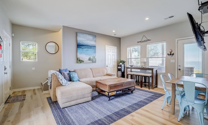 As part of the Cool Water Cottages, The Heron and The Perch offer fun-filled lakeside living for you and your loved ones! Boasting two separate living spaces, get inside and explore the sun-filled interiors. Both stays feature spacious living rooms adorned with soft seating and a large TV. As well as, well-equipped kitchens with stainless steel appliances and granite countertops. With three bedrooms between the two cottages, there is ample space to sprawl out and get comfortable in. Your group will appreciate the plush bedding and central air-conditioning in each room. When you aren't playing outside, engage in some friendly competition over the Ping-Pong table, or throw your clothes in the washer/dryer for a refresher.