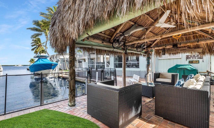 Step into the Heron House, a pristine 2-bedroom retreat eagerly anticipating your arrival in the enchanting Florida Keys. This impeccably maintained residence is thoughtfully furnished with all the essentials to transform your stay into a home away from home. Outside, a spacious screened-in patio beckons, featuring a functional wet bar and ample seating for gatherings. Along the canal, a refreshing tiki hut provides additional seating for you to unwind and savor the breathtaking sunsets over the Florida Bay. Dock space is available for boats up to a 24 feet. Inside, discover two generously sized bedrooms, a main living room, and a secondary living space adjacent to the well-appointed kitchen. The kitchen boasts modern stainless steel appliances and is fully equipped with cookware, ensuring you feel perfectly at home during your stay. Welcome to the Heron House, where every detail is designed to enhance your vacation experience.