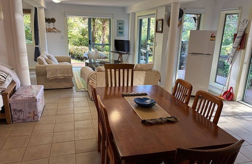 The main studio is located on the ground floor of our house. This sleeps four people. One queen and two singles. There's also a sleepout with a queen bed which you are welcome to use.