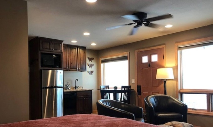 A luxury studio style suite with a kitchen, 3/4 bathroom, gas fireplace, TV and a very comfortable bed. A private entrance is also available to help one enjoy the peace and quiet. The Lake Superior views and the proximity to Lutsen Ski Resort, the Superior Hiking Trail, Superior National Golf Course and the state bike trail are incredible. You won't be disappointed! It's very close to some wonderful restaurants, bars, state parks and more. This property is strictly an animal-free zone due to severe allergies.