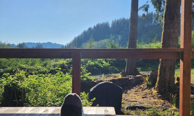 Very peaceful, private tiny house renovated in 2020, offers a huge newly built covered deck facing the valley. Large evergreen trees and lush ferns throughout this magical property, Elk Creek runs through the land and you can hear the Calawah River nearby. The house is equipped with everything you may need to make your stay enjoyable.