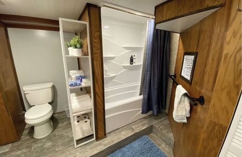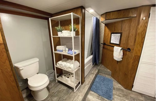 Clean and updated with fresh towels, hotel-style toiletries, and a bright, modern aesthetic.