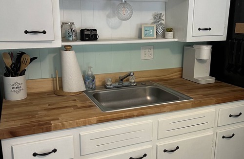 The Hideaway is an older cottage full of character with a private backyard and shared access to Crooked Lake. It actually has some fun history behind it and was used as a hideout by bank robbers back when the Mackinaw City bank heist took place. We wanted to keep that historical feel so this place has that traditional lake cottage charm with some modern conveniences that will make your stay more comfortable.