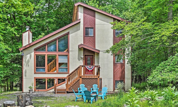 Get away to the Poconos and stay at this 5-bedroom, 3-bathroom vacation rental nestled in a private section of The Hideout community - a Gold Star private 4-season gated recreational community with the highest level of public safety services. With a private forested space to call your own, a game room, and access to lakes and tennis courts, this Lake Ariel cottage is sure to please. When you're not skiing on the community hill, enjoy a day of horseback riding. Adventure awaits!