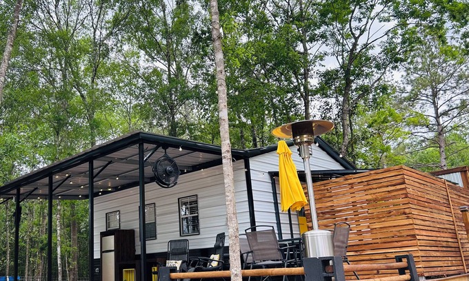 Relax with the whole family at our cozy barndominium studio in the Piney Woods of Kountze, TX—50 yards from the main house. Relax while sitting on the spacious porch drinking your favorite beverage—or unwind in the hot-tub made for two. You can also enjoy sitting on the deck overlooking the pond. Other area activities include trail hikes in the nearby Big Thicket National Preserve & canoe and kayaking down the Village Creek. This cozy retreat offers an open floor plan with 1 queen bed, a living room with 2 twin beds or can convert to 1 king bed, perfect for a small group of guests or a romantic getaway. The bathroom is equipped with a shower and a hairdryer for your convenience. Enjoy amenities like WiFi, heating, AC, a washing/dryer combo machine, and an iron during your stay. Kitchen has full size stove, microwave, refrigerator and coffee maker. We're happy to assist with any questions while you stay at our cabin.