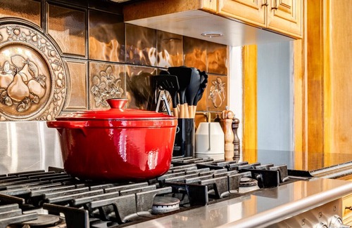 The chef’s kitchen is a dream come true for culinary enthusiasts. Outfitted with double ovens, high-end appliances, and generous counter space, it’s perfect for preparing gourmet meals, hosting holiday dinners, or even bringing in a private chef for a special evening. The seamless flow from the kitchen to the dining and living spaces makes it ideal for socializing.