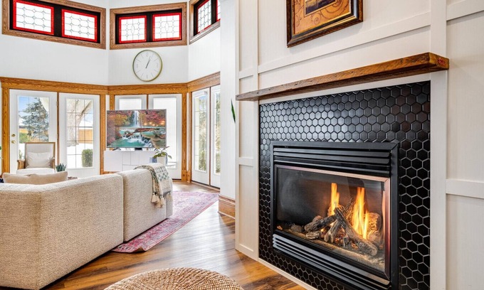 The suite features three beautifully appointed bedrooms and 1.5 baths, thoughtfully designed with relaxation in mind. At the heart of the suite, you’ll find a grand open-concept living area with soaring cathedral ceilings, plush seating, and a cozy fireplace, creating the perfect atmosphere for entertaining or simply unwinding after a day of adventure. Gather around the fire for game nights, movie marathons, or casual conversations that stretch long into the evening.