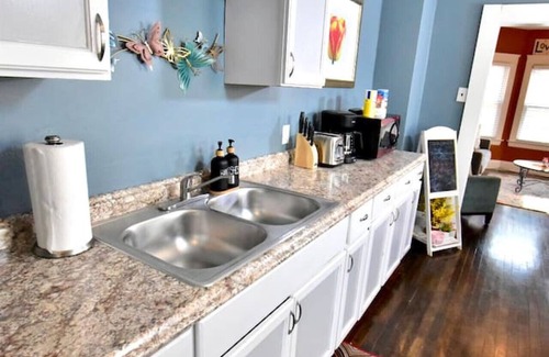This spacious and fully furnished duplex home comfortably accommodates up to 10 guests, making it an ideal choice for couples, groups, families, or anyone seeking more space than a typical hotel room can offer. Conveniently situated in the heart of the vibrant city of Lakewood, it boasts a prime location just 10 minutes from downtown Cleveland. Featuring three bedrooms with a total of four queen-sized beds, one comfortable twin-sized cot, and a pull-out sofa,