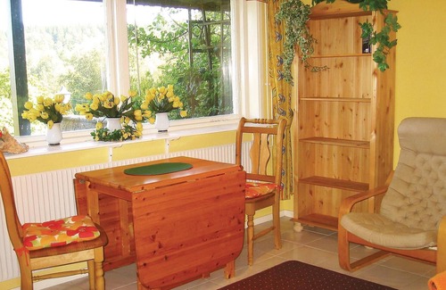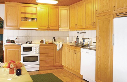 The house is uniquely beautifully situated and lets you enjoy a great view of the water. The house is bright and invitingly furnished, a few steps lead you down to another level, there you come to a large terrace with lake view. In the annex there are showers, sauna, washing machine. You can swim at the beach directly under the house, but a really nice sandy beach can be found 2 km away. To Ullared it is 20 km and to Falkenberg 50 km. Obligatory final cleaning. Canoes are available.