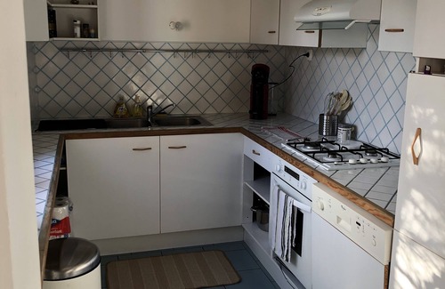 Equipped kitchen: oven, dishwasher, gas hob with hood, fridge, kettle, toaster, microwave, nespresso machine.