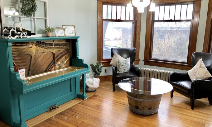 The historic home built in 1915 boasts 2,300 sq. ft, with 4 bedrooms, 2 full bathrooms, and an updated kitchen while still maintaining its original character and charm. Located in Baroda’s downtown area, walking distance to wineries, cafes and restaurants including Round Barn Public House. It’s a 5 minute drive to Tabor Hill, Gravity, Dablon, Round Barn and many more wineries.