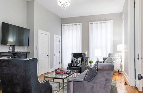 Welcome to the Historic House on Main! This 5000 sqft home features 4 private condo units under one roof to accommodate large groups. Originally built in 1872 by a local Hemp Merchant, The House on Main has been restored to its former glory with every detail thought out to provide a truly unique and perfect experience. Come enjoy the old-world charm of a grand two-story staircase, 12-foot ceilings, and beautiful 150-year-old hardwood heart pine floors! Book now to stay in the heart of G-Town!