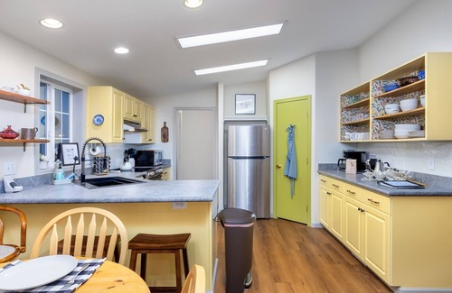 Kitchen: Fully equipped, Keurig coffee maker, drip coffee maker, coffee grinder, complimentary coffee and hot chocolate, NutriBullet blender, electric tea kettle, waffle maker, Crockpot, rice cooker, toaster, complimentary spices, cooking basics, dishware & silverware
