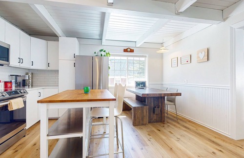 Thoughtfully updated. Restored and renovated. The Chalet has everything you need for an unforgettable and comfortable stay. Located at the very end of the road and backed by national forest land, this serene, three-level retreat offers privacy, and no worries about parking or getting blocked in—unlike many other properties on the mountain.