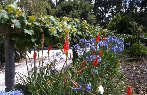 Just outside the city boundaries on sunny Eastside, Facilities include a full kitchen, queen bed, bathroom,washing machine,fire place and deck where you can relax with a glass of wine in the evening.