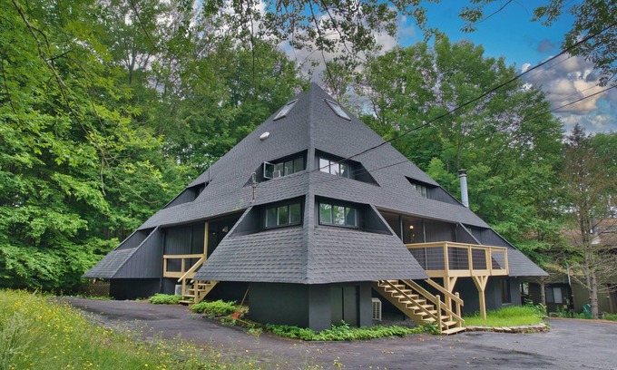 The infamous Pocono Pyramid nFeatured on HGTV Ugliest House In America! has 5 Bedrooms , 3 Bathrooms, and max occupancy of 12 people. The minimum rental for this property is 1 nights, but this can change depending on the season you plan on staying. Previous guests have rated it 2, and VRBO labeled it a top-rated Cabin because of the excellent services rendered by the owner or manager of this Cabin, and has consistently provided great experiences for their guests. Most families or guests that use it recommend it to their friends and some of them are repeat guests. Cabin has a friendly neighborhood, and the Hamlin has interesting places to visit. If you want to learn more about the Cabin in Hamlin, such as places to visit and things to do nearby, you can check below to learn more.