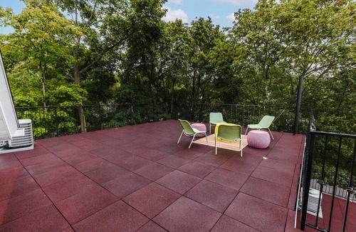 This gorgeous 1,800 sq. ft. 3 bedroom, 2 1/2 bathroom suite at The Inn at Newton Highlands is impeccably designed and decorated. It occupies the second and third floors of the building and immerses you in luxury and style. Its private 800 sq. ft. deck offers stunning views of the village. The space comes with a bonus room. This suite is one of several luxury suites in a small boutique Inn located in the heart of Newton Highlands in a beautiful , fully remodeled historic building.
