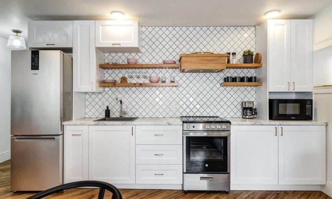 • Fully stocked kitchen (pots, pans, basic spices, oil, knives, etc)