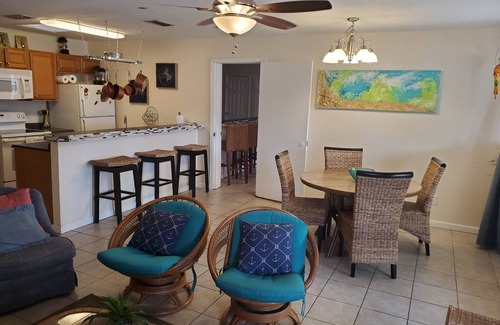 Welcome to our spacious, rustic 4-bedroom, 4-bathroom condo on South Padre Island, perfect for large families and groups. With two living rooms and two fully equipped kitchens, there's plenty of space to relax and enjoy your stay. While the Kingfish Cottage is an older building, we are continually making improvements to enhance your experience. Our condo offers classic South Padre Island charm and is just steps from the beach. Affordable and cozy, it's ideal for budget-conscious travelers seeking great value. Experience the authentic island life in our welcoming condo, perfect for memorable vacations and gatherings. Book your stay today and enjoy a comfortable, convenient, and value-packed getaway!