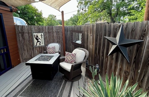 The Kiwi Crossing is a “Diamond in the Rough,” every detail from OCD cleanliness to privacy, to the feeling that you have been transported to an oasis with all the feels of a lush english artsy garden! We have created a place of solitude, away from the hustle and bustle of city life in a rural community that will leave you inspired. At night, the garden is magical as the twinkly lights and chandelier make the place jaw dropping! In addition to the 28ft Airstream that has been tastefully renovated, you can also enjoy our fully enclosed gazebo (with TV) and private back deck with fire pit. This is a rural little town and not a bad distance to any of the neighboring towns, Salado 20 minutes, Temple 30 minutes, Georgetown 25 minutes, Taylor 20 minutes and Austin 1 hour. My husband Dan and I live on property but interaction is minimal, usually when the flowers are crying out for water. It is our goal to give you the WOW experience and to make your stay GREAT. Hope to see you soon.