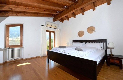 sunny plot with nearby access to Lake Lugano and private parking. Lake Garden 2 is a spacious duplex apartment with a total of four beds (each for 2 people) and two bathrooms. On the 1st floor there is a spacious bedroom with a double bed, a bathroom with bathtub and a large kitchen with a cosy living-dining area. From there guests have direct access to the terrace with a fantastic lake view, as well as to the garden, where a pretty pergola invites you to linger. The attic offers a spacious open plan area with a large double bed, a sofa bed with a TV niche, a bedroom with two single beds and a separate bathroom with shower/toilet. Up here a small balcony invites you for a nightcap. The lake is just a few steps away and Caslano is a lovely walk away via a beautiful trail along the lake and Monte Caslano.