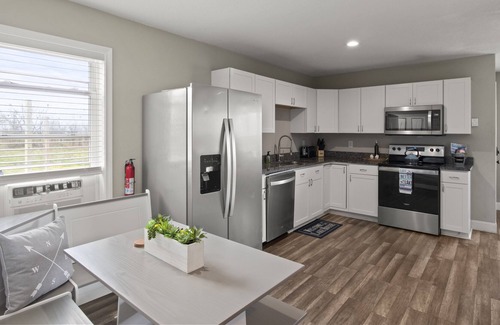 There are three short term rental houses on the property, all of which are duplexes. Your house is the first one on the left, and your vacation unit is the furthest one from the driveway labeled Building 1 Unit B. You will receive a custom entry code 24 hrs prior to check in. As a guest, you can enjoy access to the entire vacation unit (except for the cleaner’s closet), including the free WiFi, flat-screen TV, and a full kitchen. The walls are soundproofed but there should be an expectation of some noise that travels between the two units. In the case of excessive noise call immediately and it will be taken care of expeditiously. This Unit is the one closest to the road and you may hear some road noise during your stay. You also have access to your own firepit just be sure to bring your own wood!