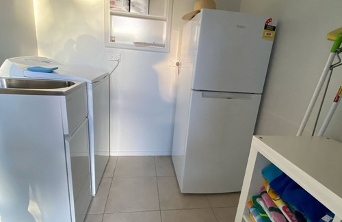 The main bedroom and bedroom 2 - both double rooms, are in a self contained sleep out immediately adjacent to the main part of the house, featuring a walk in robe and a ranch slider off the master bedroom opening out onto an outdoor courtyard. Bedroom 3 is a single room, located inside the house adjacent to the bathroom and laundry.