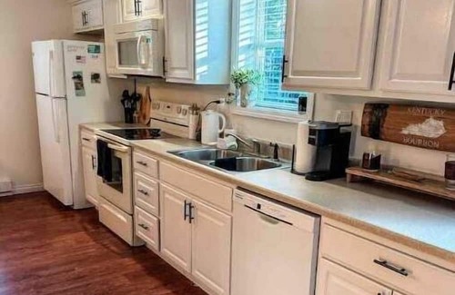 Welcome to the Lakeaway! Relax, unwind, explore and make memories at this "Old Kentucky Home". Conveniently located 4 miles from the Barren River State Park Resort which offers, lake access, dining, drinks, golfing, hiking, mountain bike trails, horseback riding, boat rentals, fishing and so much more. The home features a cozy screened in porch, large outdoor fire-pit and covered lounge area, kids play area, kayaks, bikes and more. You are bound to enjoy your getaway at The Lakeaway.