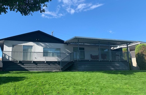 The Osoyoos Lakefront get-away is a lakefront home 2000sqft 3 bedrooms (1 king rm 1 queen rm, 1 queen rm w single as well) / 2 bathroom home located on Osoyoos Lake, close to town and parks/beaches. Take in views of the lake while reading a book or having your morning coffee. Enjoy the private beachfront lawn. Spend your days down at your own beach. Parking for 2 vehicles. Wineries and fruit stands nearby. The perfect family get-away!