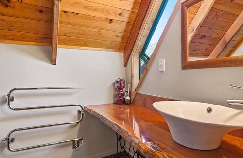 This sunny 4-bedroom home with Wi-Fi sits just minutes from the edge of Lake Tarawera and boasts wondrous views. It also has a games room that is perfect for rainy days.
